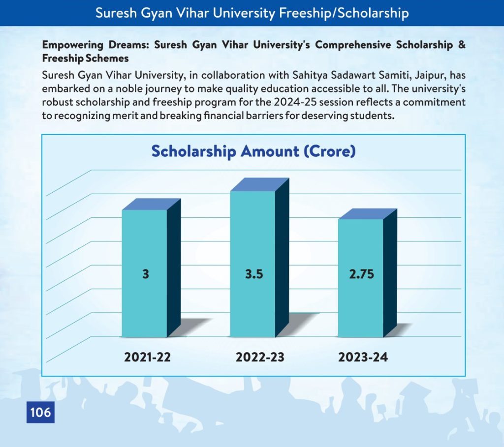 All the admissions will be processed by the Admission Committee and their recommendations will be approved by the Hon'ble Vice Chancellor. The admission and scholarship committee have the right to alter the number of Scholarships offered in each stream.